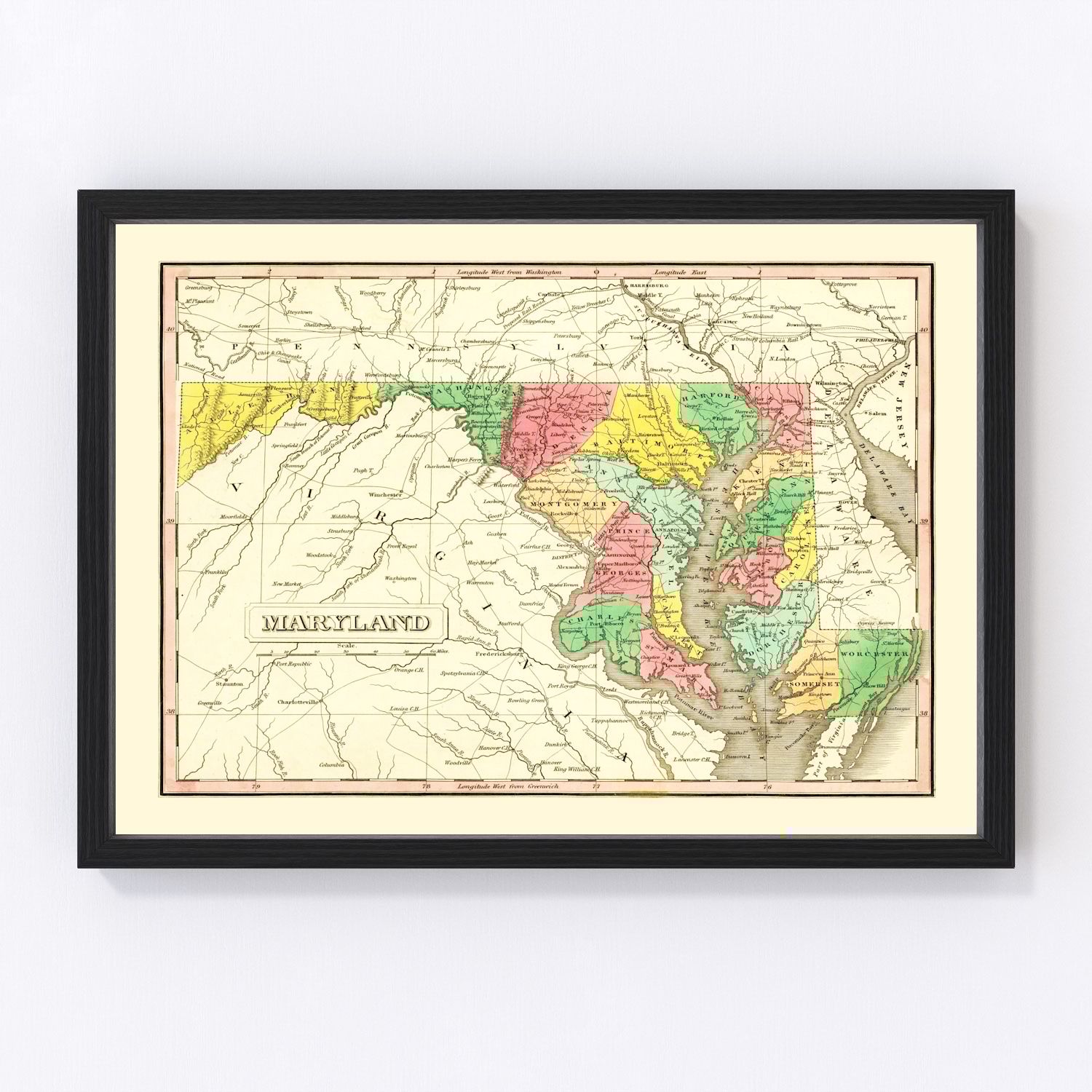 Vintage Map of Maryland 1841