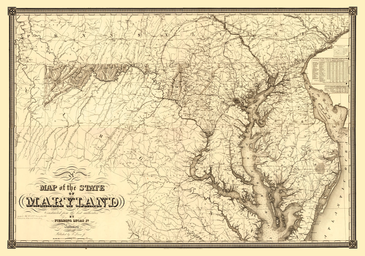 Vintage Map of Maryland 1841